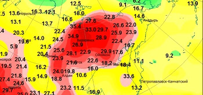 Вспомним 2020 год, когда 20 июня была зафиксирована самая высокая температура в Заполярье. В Верхоянске (115 км к северу от Полярного круга) столбики термометров показали +38 градусов по Цельсию (100 градусов по Фаренгейту). Это самая высокая температура, когда-либо зафиксированная севернее Полярного круга.