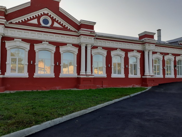 Это великолепное красное здание с массивными колоннами, украшающее центральную площадь поселка. Стоит отметить, что содержится в надлежащем состоянии и все еще используется.