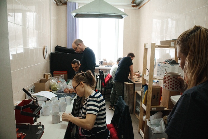 В мастерской стало совсем мало места - мы переехали на первый этаж и в нашей команде добавилась еще одна девушка - Лена, которая раньше также жила в интернате для инвалидов.