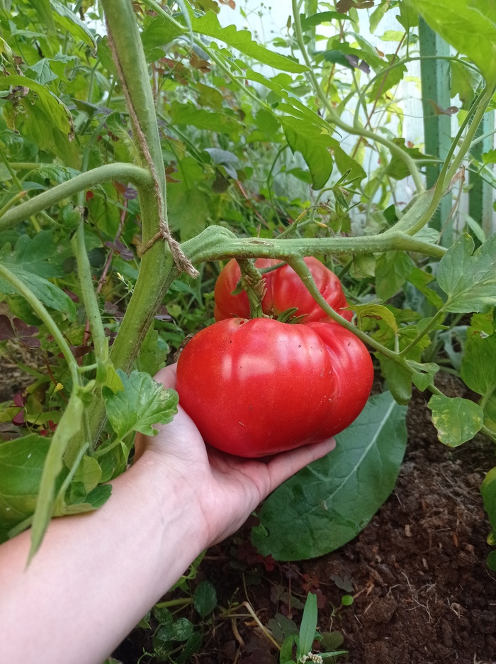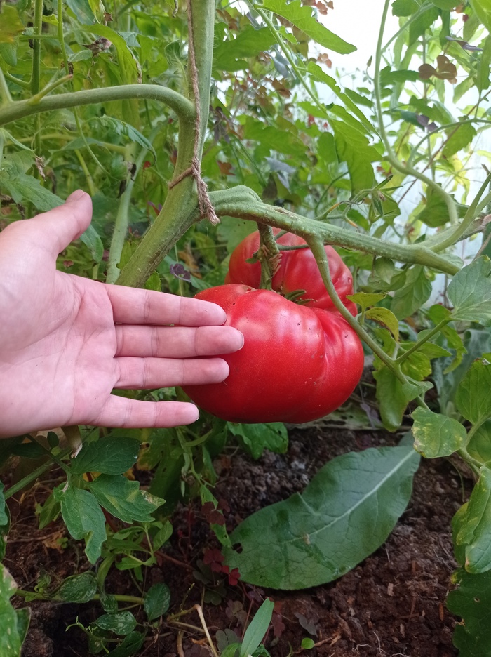А ещё вырос воооот такой помидор! К нашей печали, его с другой стороны объели гусеницы