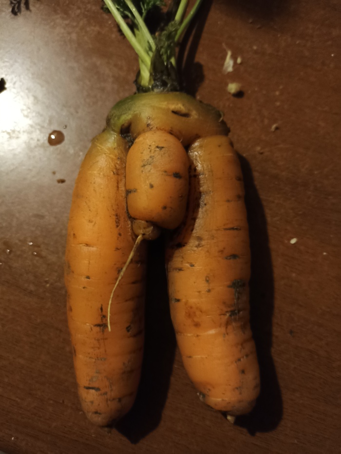 В этом году, не сильно сумневашися, решили на даче посадить корнеплоды, морковь в том числе. Сажали без особого энтузиазма, так как "на зиму" запасов не делаем, сажаем чисто для того, чтоб летом на даче было из чего суп сварить. Урожай был xy#вым, честно сказать... Но такого даже мы не ожидали: