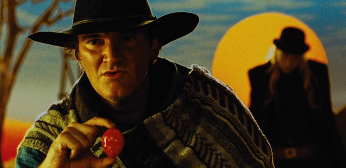 Все же такое понимание жанровых границ представляется слишком вольным. Для предметного разговора нужно было дождаться захода Тарантино непосредственно на территорию Дальнего Запада. Режиссер планировал ставить вестерн сразу после «Убить Билла» и уже в 2007 году примерил пояс с кольтом в качестве актера в картине Такаси Миикэ «Сукияки Вестерн Джанго», который позиционировался как японский вариант спагетти-вестерна (сукияки — японская лапша).