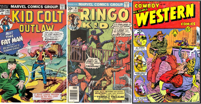 Сходство прослеживалось в иконографии, фабулах, типах персонажей. Так, картина Дуччо Тессари «Пистолет для Ринго» начиналась с пришедшего из США маркера жанра — баллады, предварявшей многократно «обстрелянный» за океаном сюжет о заложниках. Выручал попавших в беду по-голливудски крутой стрелок, типичный для многих вестернов человек с принципами и в то же время находящийся вне закона. Вместе с ним на первом плане действовали честный шериф и девушка чистых нравов, которая влюблялась в Ринго, но тот уезжал на закате многотрудного дня спасать других... Одним словом, картина была напичкана шаблонами американского B-вестерна 1950-х.