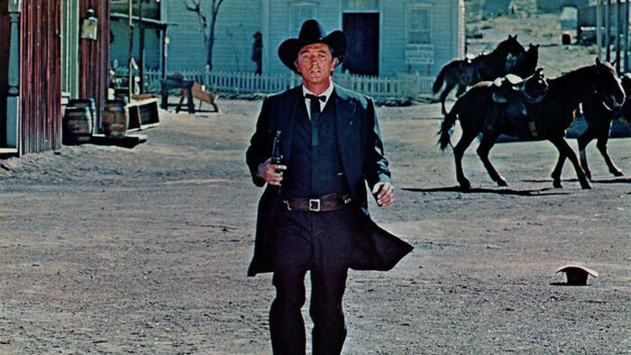 У нас тут снова Дестри снова в седле и снова аналогичная финалочка. Чел хотел угодить всем, и плохим и хорошим, наебенить какого то балансу между светлой и темной стороной. В момент когда жители пришли линчевать пидораса-судью, наш молодец сказал "нет, так нельзя, он плохой, но кто не с говнецой, пшли нахуй отсюда и ружья свои заберите, пока в жопу не запихал" и спас засранца. И если от такого благородства Дестри просто лишился друга, то спасенный негодяй СЖЕГ НАХУЙ ВСЕ ПОСЕВЫ, МЕЛЬНИЦУ, БАШНЮ ВСЕ НАХУЙ СЖЕГ РАЗРУШИЛ ПИЗДЕЦ!!11 нет, правда, момент уничтожения ресурсов мирных жителей тут показан страшно. Главный герой полный долбоеб. Сюжет в целом хуйня, концовка полная хуйня, фильм получает 67\100. Почему не дно? Потому что при плохом сюжете за фильмом скажем так весьма интересно наблюдать. Сцены, где судья и главный герой просто пьют алкоголь и смотрят друг другу в глаза, где главный герой долго разворачивает конвертик с женскими волосами актрисы (певицы? блогерши? я не помню кто она, но на ней повязан сюжет), а судья, влюбленный в нее, аж трясется в предвкушении - вывозят чисто одной актерской игрой. Герои страшненькие (тут вроде гг из Ликвидации), но даже русская озвучка мистером и восстали машины из пепла ядерного огня не испортила фильм, актеры того времени были крутые.
