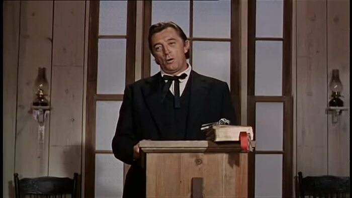 Опять же проповедника играет один из символов нуара, актер Роберт Митчум. В данном случае можно как бы провести параллели с фильмом «Ночь охотника» (1955). Во-первых, это тоже была смесь нуара и вестерна. Во-вторых, Митчум там играл преступника по кличке «Проповедник».
