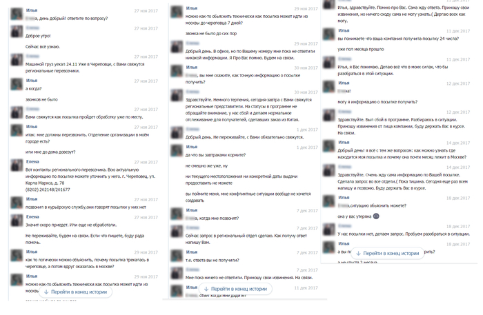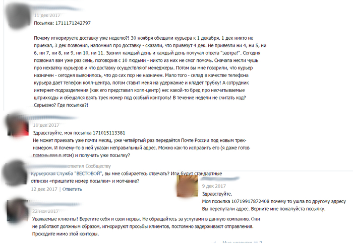 Я звоню по номеру горячей линии (Вестовой) и спрашиваю что с ней, на что получаю ответ:"она будет вам отправлена курьером к вашему дому". К слову добавить, трубочники совершенно не владеют информацией: не переводят текст накладной, читают Моё имя как Юлия (меня зовут Илья, рад знакомству), Путают Вологодскую и Волгоградскую область (подумаешь, разница в 1000км) и.т.п. . Данные неточности я выслушивал ещё 2 месяца (свинособаки, не могли поправку в своей БД сделать?). Одновременно с этим ищу их группу в вк, где нахожу администратора.
