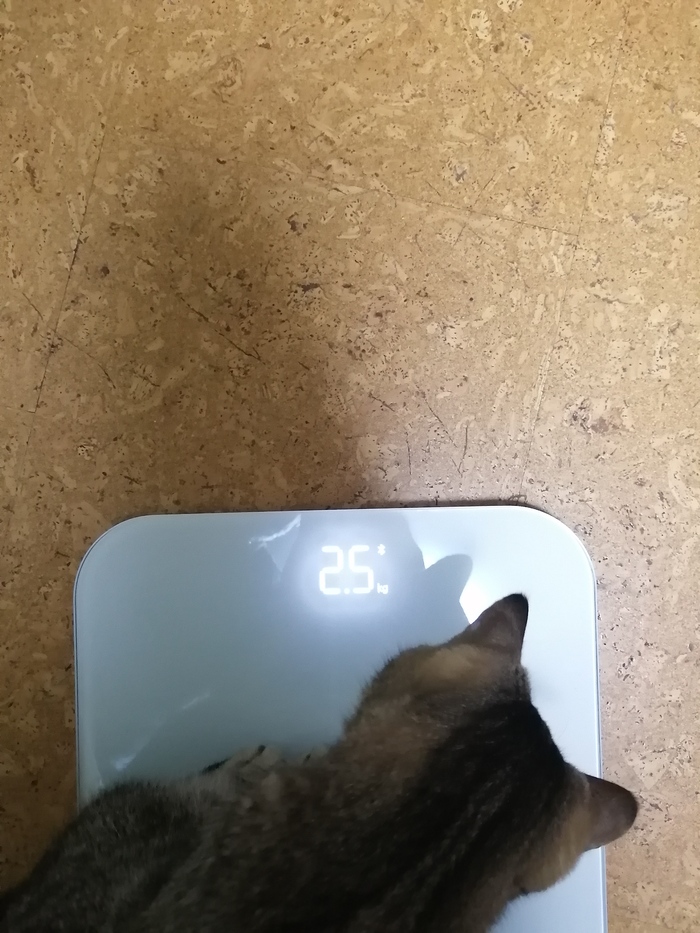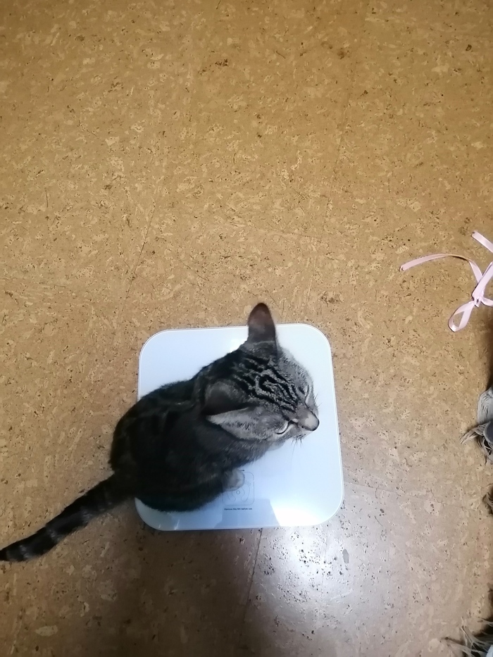 Достала весы. Вся семья проверяла, сколько съела оливьешки за праздники. Ракета тоже не осталась в стороне. Вес не изменился. Котик молодец!
