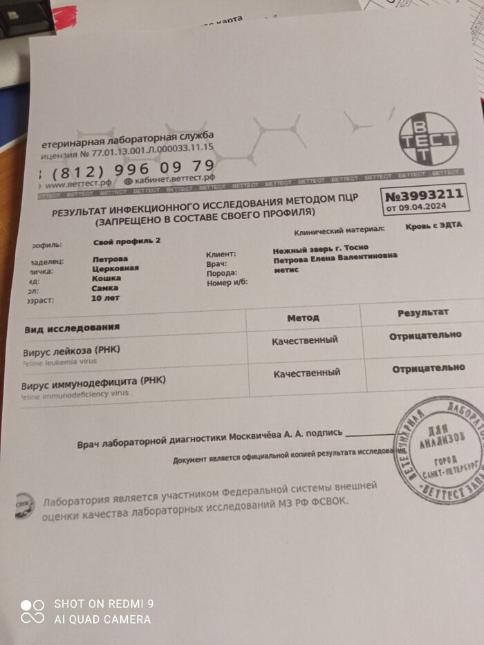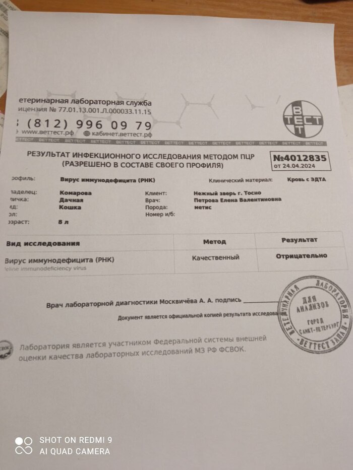 1798 рублей – анализы и корм