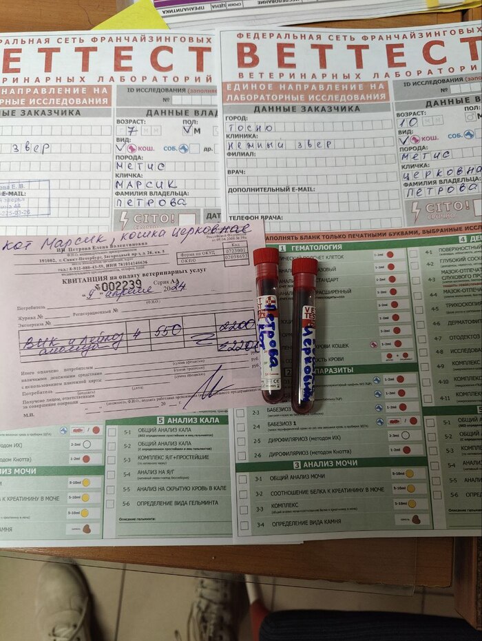 2835 рублей – анализы и обработка