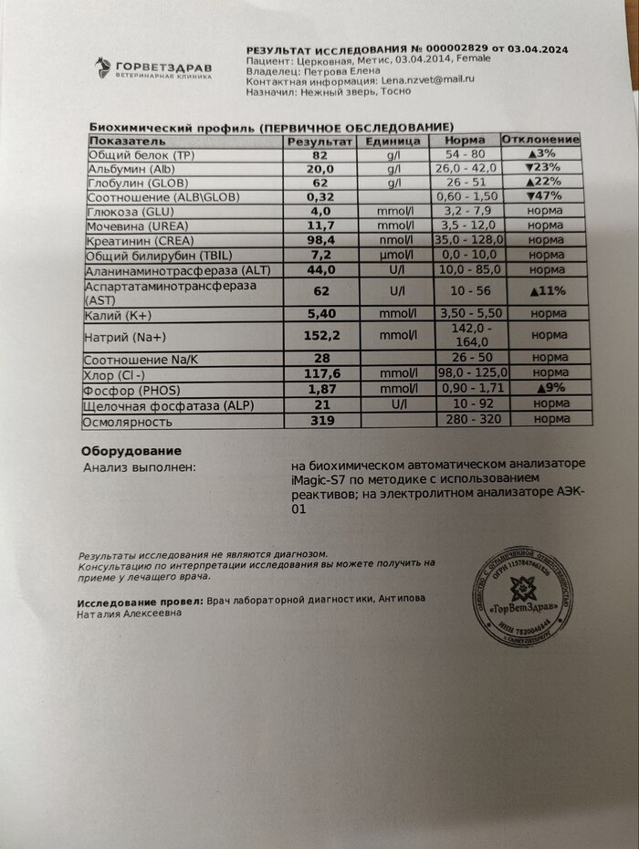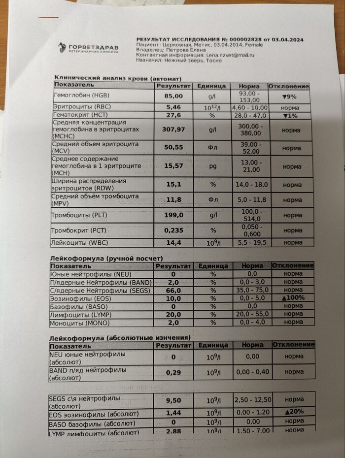 14 338 рублей – операция у Розового Носа (выпадение кишки). Анализы + стац