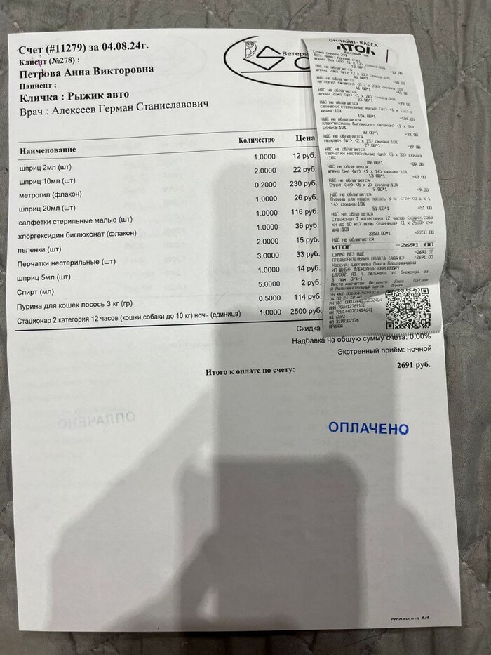 25914 рублей – операция у Рыжего и обследование Плешика