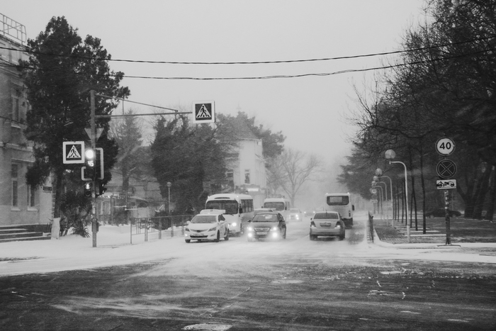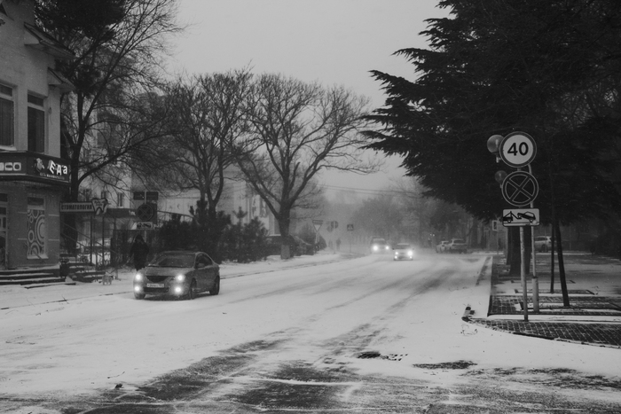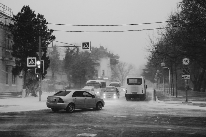 Снег очень редкое явление на юге России и если он все таки пошел, то с ним прибудут и другие зимние "радости" в виде сильного ветра до 40м/с и мороза.