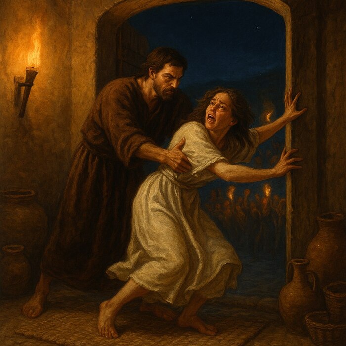 После разрушения Содома и Гоморры Лот с двумя дочерьми укрывается в пещере (Бытие 19:30–38). Думая, что мир погиб и они остались единственными выжившими, дочери решают напоить отца вином и вступить с ним в связь, чтобы «сохранить род». Каждая рожает сына (Моава и Бен-Амми), но сам факт инцеста и манипуляции пьяным Лотом делает эту историю дикой. Лот, похоже, даже не осознаёт, что происходит, а дочери действуют без его согласия.