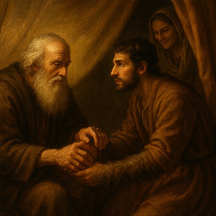 Исаак и Ревекка начинают как романтичная пара: слуга Авраама выбирает Ревекку для Исаака, и Библия говорит, что он её «полюбил» (Бытие 24:67). Но их брак портится, когда дело доходит до детей. Ревекка предпочитает младшего сына, Иакова, а Исаак – старшего, Исава. Эта разделённость приводит к драме: Ревекка подговаривает Иакова обмануть слепого Исаака, чтобы получить благословение, предназначенное Исаву (Бытие 27). Она помогает Иакову выдать себя за брата, обманывая мужа, а Исаак, не подозревая подвоха, благословляет Иакова. Исав, узнав об обмане, приходит в ярость, а Ревекка отправляет Иакова в бега, чтобы спасти его от мести брата.