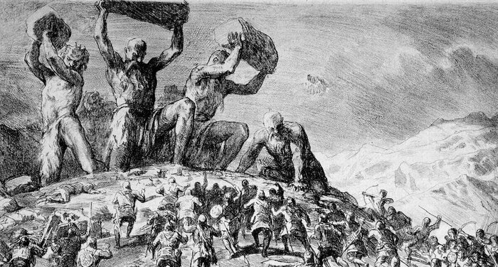 Исполины. Исполины, родившиеся от блуда падших ангелов со смертными женщинами, были страшными чудовищами, непокорными и неподобными Богу.