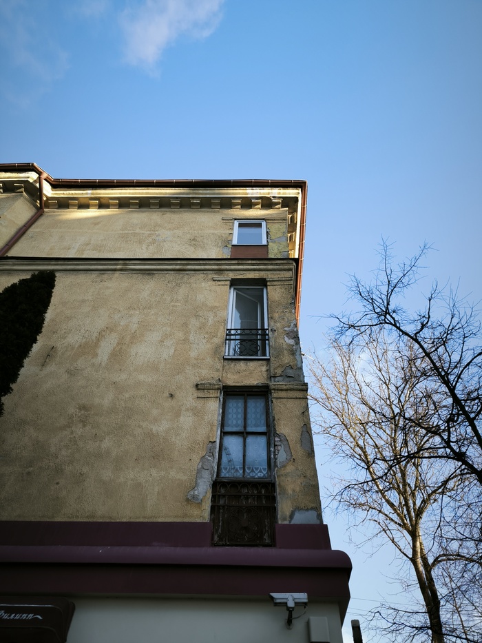 Фактически в самом начале улицы, стоит дом, который не отреставрирован. Казалось бы странно 🤷 но в этом есть, даже какой-то шарм, как будто так, даже лучше. И ещё один почти такой же, но в конце улицы.