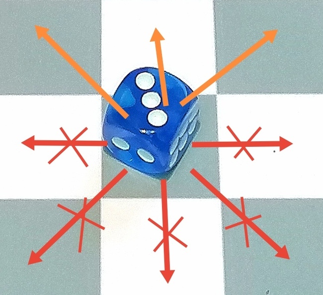 - Выпавшее значение на кубике указывает, на сколько клеток игрок должен передвинуть выбранный кубик. Кубик устанавливается так, чтобы выпавшее значение оказалось сверху.