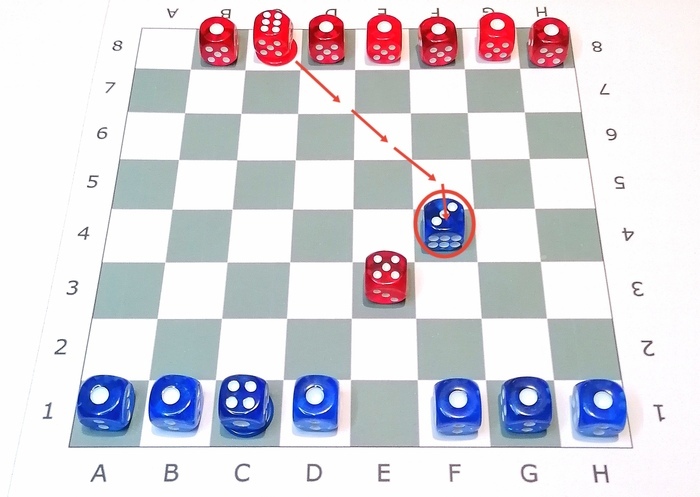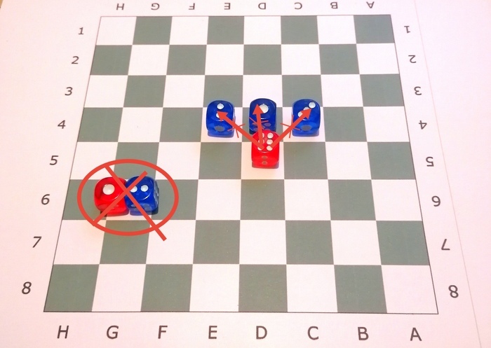 - Кубик сбивший кубик соперника остается на месте, где он был сбит со значением выпавшим в рамках хода.