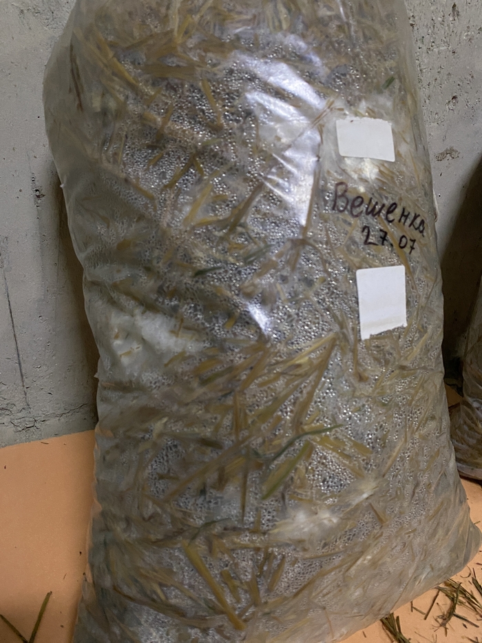Для зароста освещение никакое не нужно, температура в 20-22 градуса идеальна, влажность в мешках 100% что собственно грибам как котику сметанка. В течении 2-3 недели мицелий полностью захватит мешок, и начнет формировать примордия.