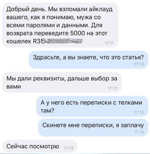 «Во-первых, мы настоятельно просим вас удалить видео, которое вы загрузили на YouTube, так как оно привлекает нежелательное внимание. Во-вторых, мы хотели бы пояснить вам, что мы не вознаграждаем киберпреступников за то, что они нарушили закон», — ответили хакерам предполагаемые представители Apple и сообщили, что вся переписка будет передана правоохранительным органам.