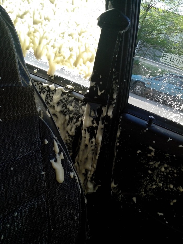 Будь пена красной, выглядело бы как салон автомобиля из "Криминального Чтива".