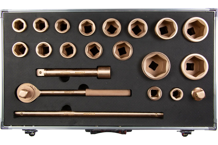 Набор торцевых головок СПЕЦГАЗ Г21/1, искробезопасный сплав БрБ2 (BeCu) твердостью не менее 39 HRC, 21 предмет. Стоит такой набор 488000руб. Ссылка на него