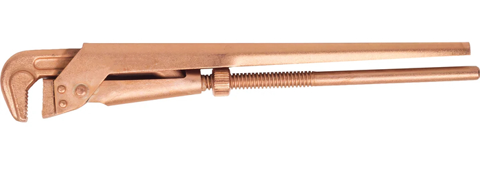 Трубный рычажный омедненный ключ предназначен для захватывания и вращения труб и соединительных частей трубопроводов. Ключ усиленной конструкции, удобен при работе в узком пространстве. Наклон зубьев против направления вращения. Покрытие инструмента медное, толщиной 30-50 мкм, выполнено электрохимическим способом. Соответствует требованиям нормативных документов ТУ 25.73.30-001-42865381-2020.