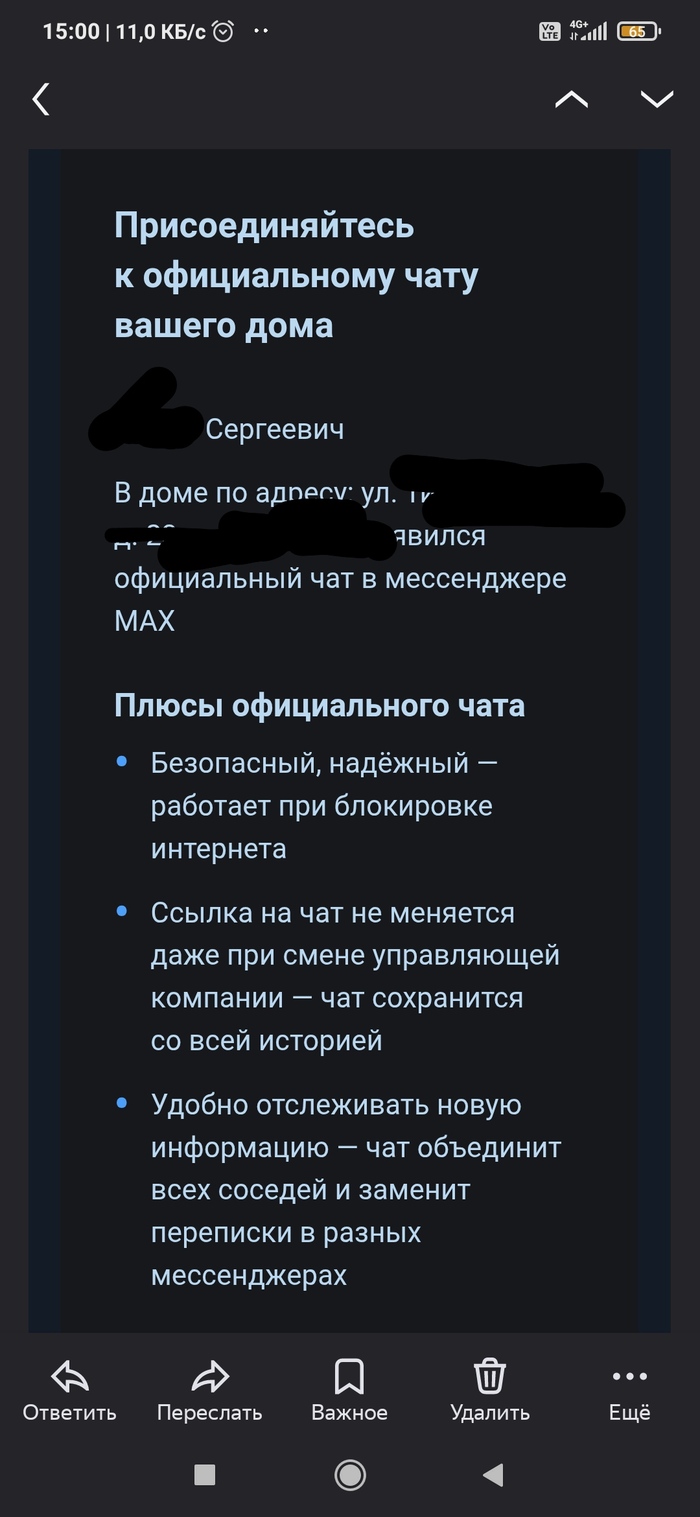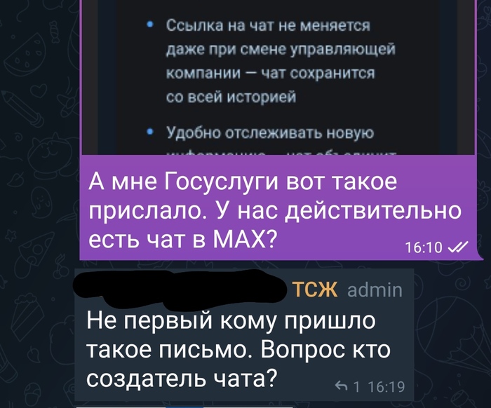 Я не знаю никого, кто сделал бы так много для удобства мошенников и даркнета. Эти гении маркетинга недавно стали создавать общедомовые чаты. Приглашения приходят через госуслуги. Причём, УК и ТСЖ не в курсе. И, естественно, модераторов и админов в чате нет!