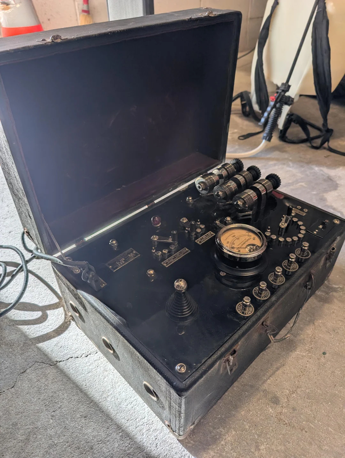 Это старый, 1940-х годов, аппарат для диатермии - лечебный аппарат, который прогревает ткани электромагнитными волнами, а не обычным нагревом снаружи. Такое тепло генерируется внутри организма, в мышцах, суставах, связках. Применяется при воспалительных заболеваниях мышц, периферической нервной системы, суставов, при спаечных процессах и некоторых заболеваниях внутренних органов.