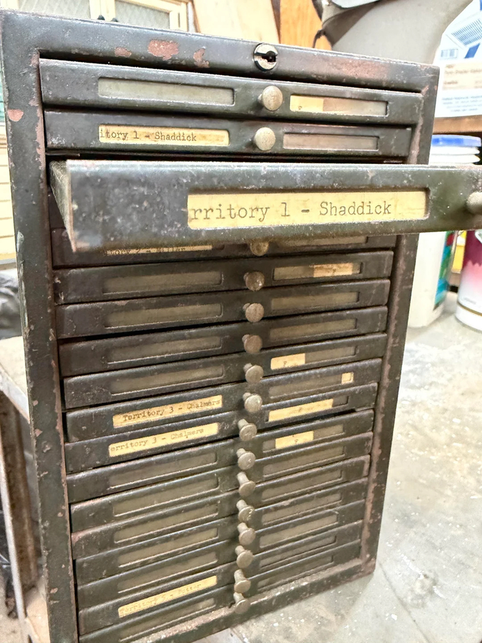 Это старая система хранения документов - необходимые документы, справки и т п клали в свой ящик, и их можно было быстро и легко вытащить. Обычно такие шкафы\комоды использовались в архивах, канцеляриях, госучреждениях, больницах и других местах, где важно упорядоченно хранить и быстро получать доступ к документам.