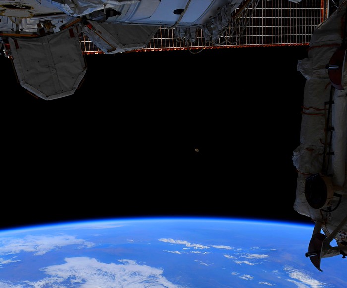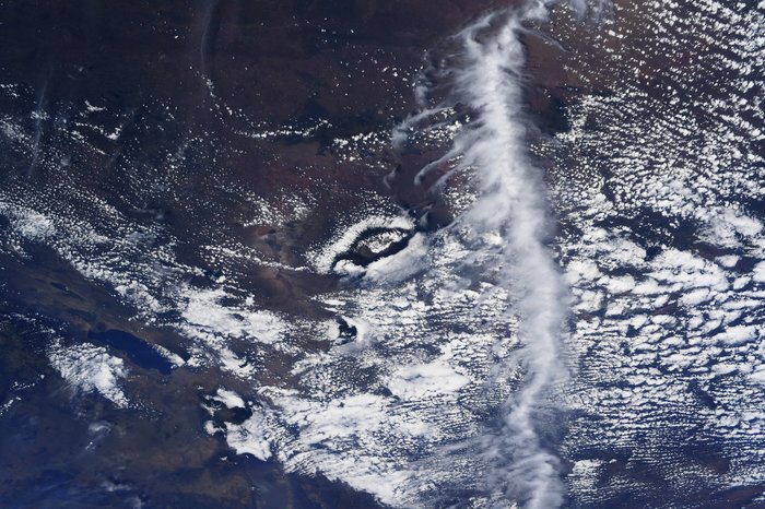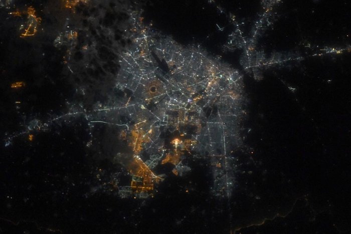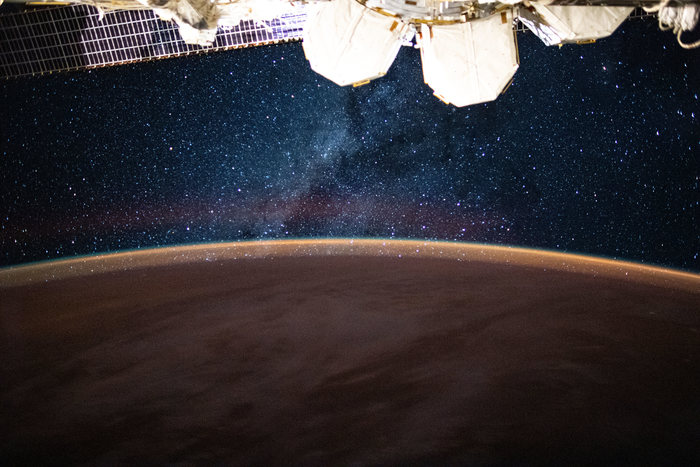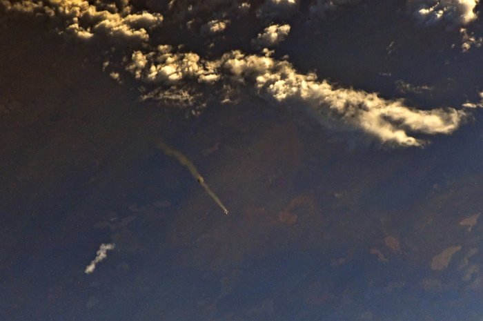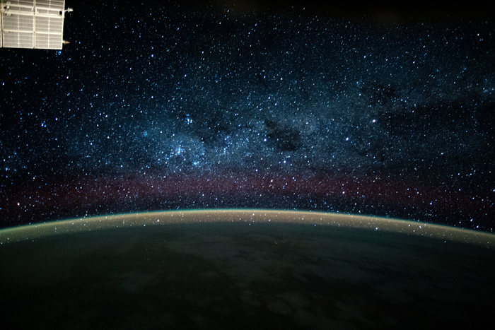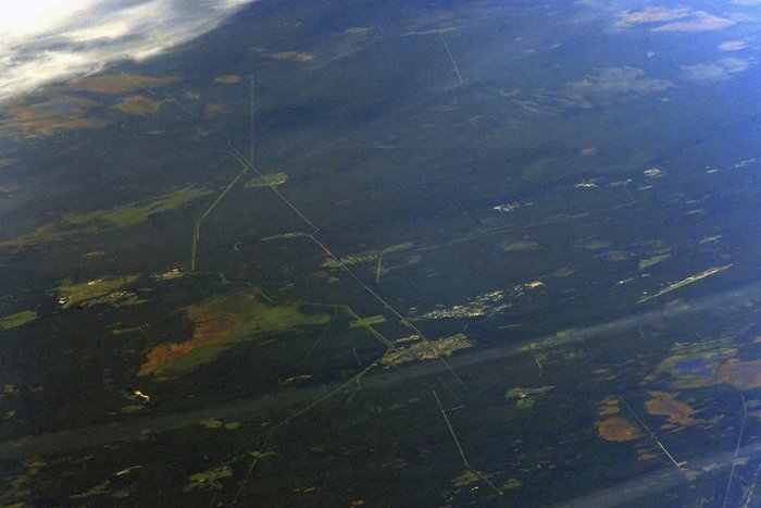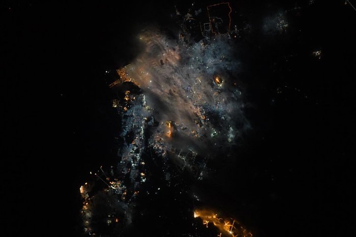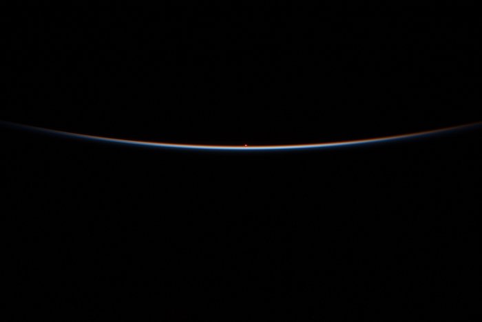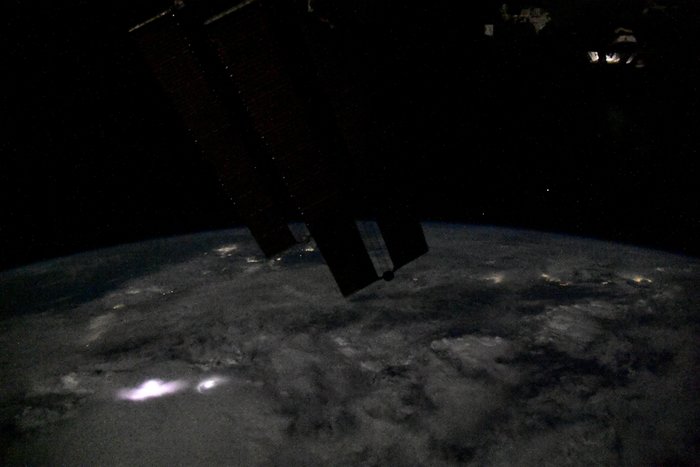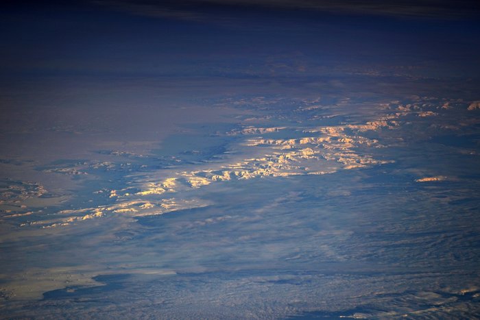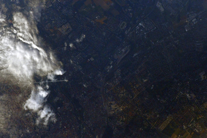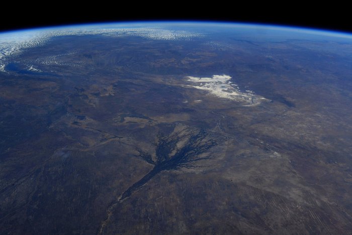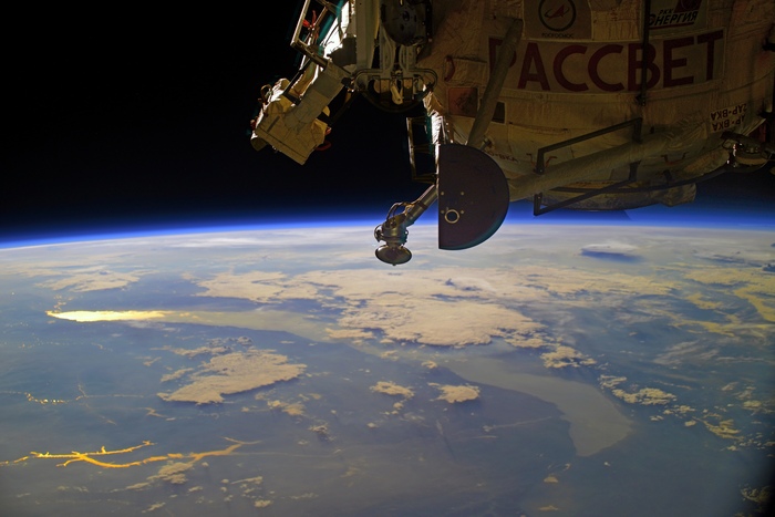 А на третьей фотографии, кстати, мне повезло поймать самолет! Это ответ на еще один самый популярный вопрос — да, пролеты самолетов мы видим с МКС, но это небольшая песчинка на фоне огромной Земли