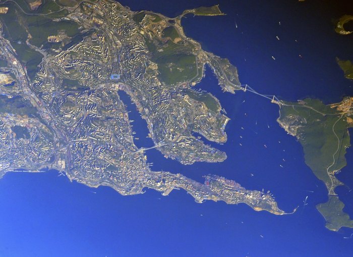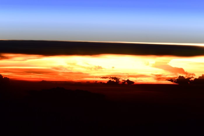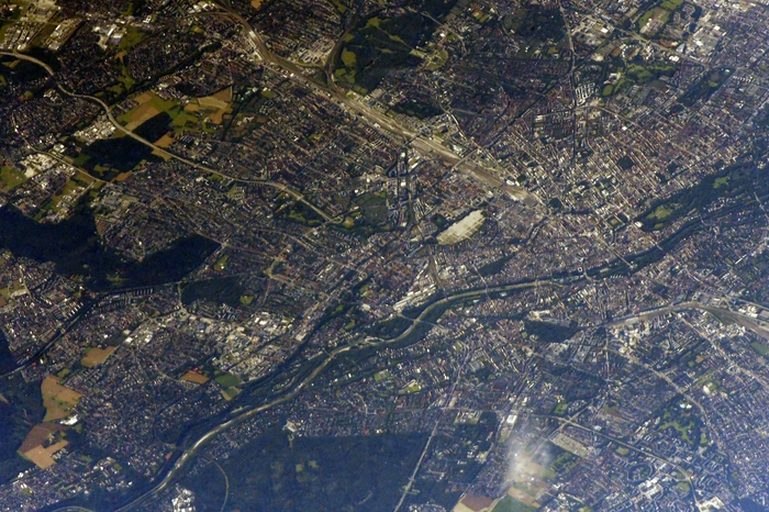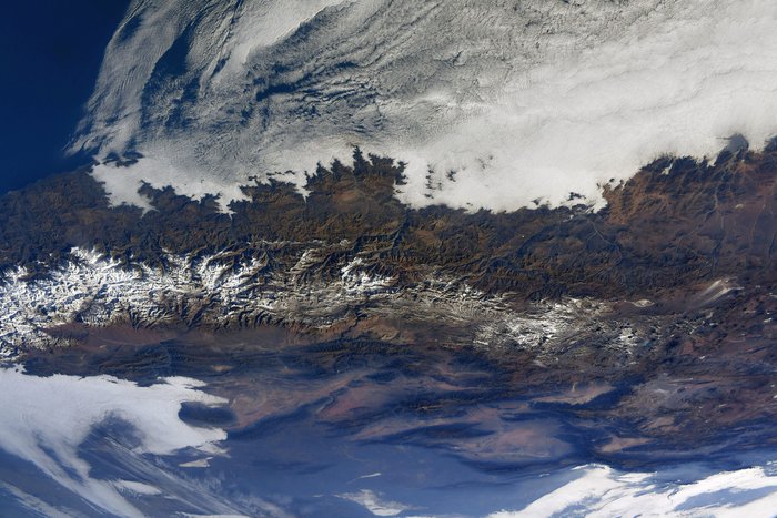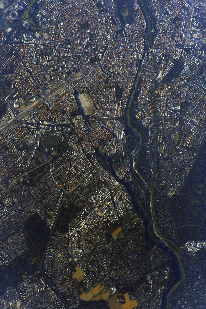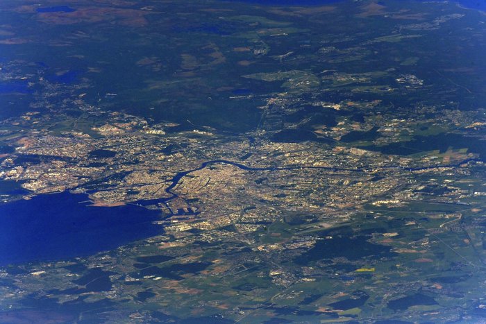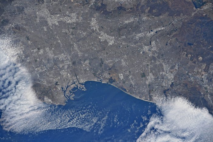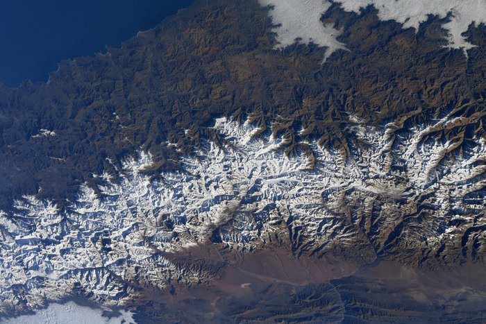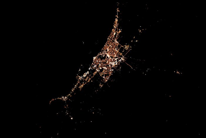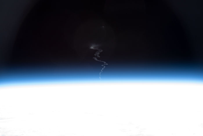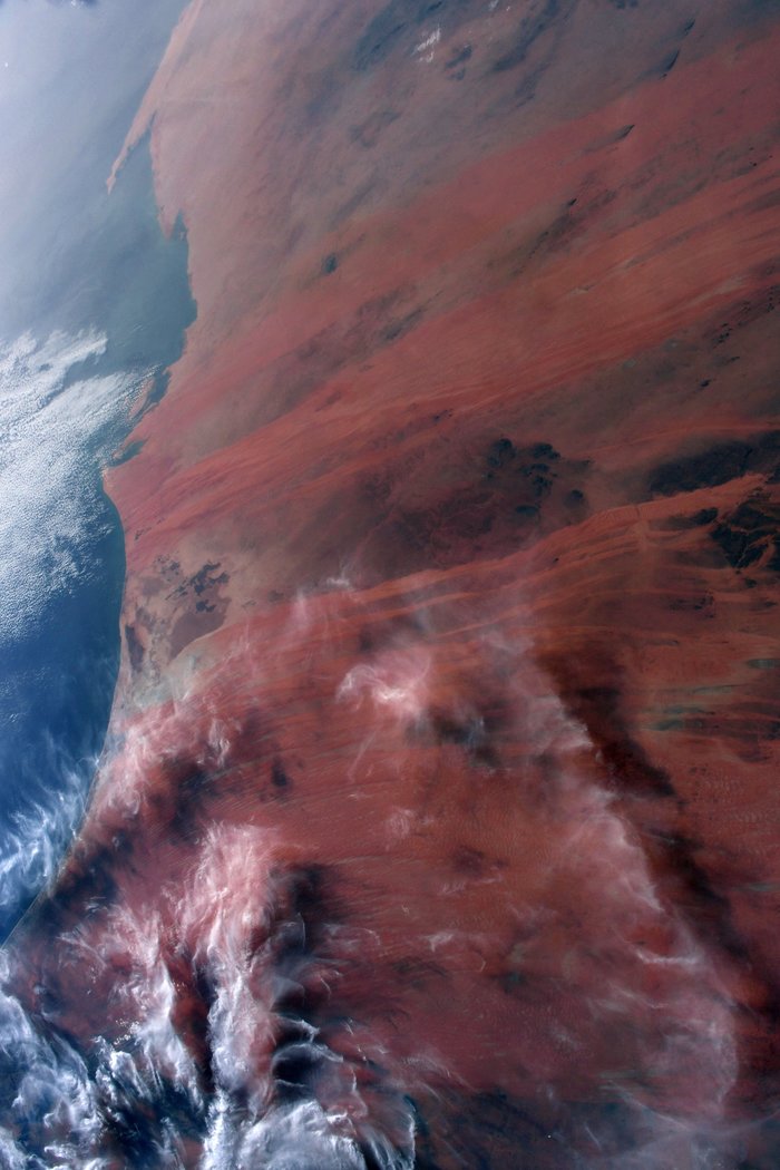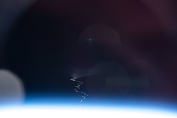 А на третьей фотографии, кстати, мне повезло поймать самолет! Это ответ на еще один самый популярный вопрос — да, пролеты самолетов мы видим с МКС, но это небольшая песчинка на фоне огромной Земли