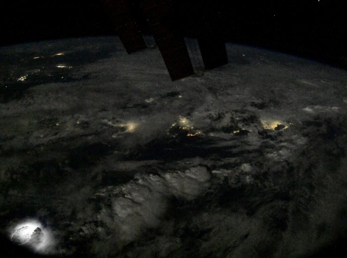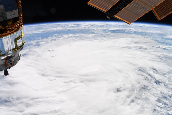 - Эта фотография урагана «Исайя» была сделана несколько часов назад, когда он путешествовал на северо-запад между Кубой и Багамскими островами. Я надеюсь, что люди на его пути будут в безопасности, и я надеюсь, что это не помешает нашему возвращению на Землю в воскресенье