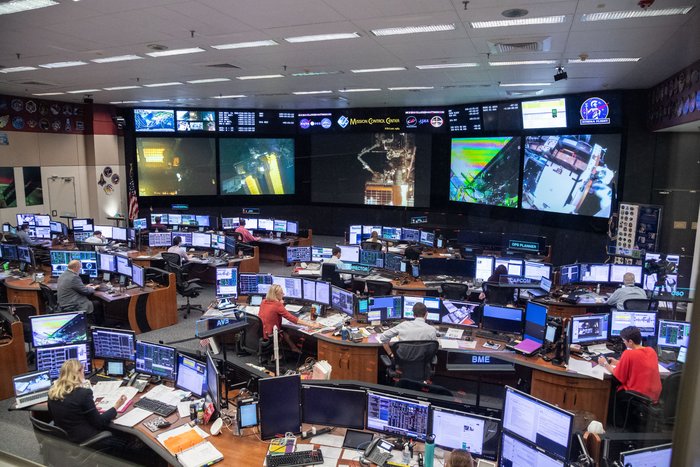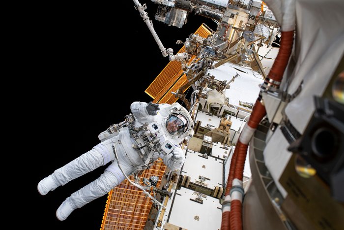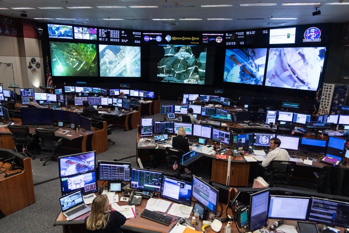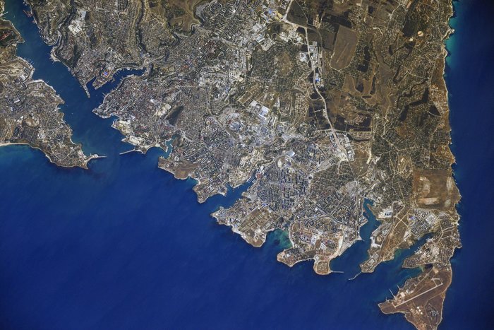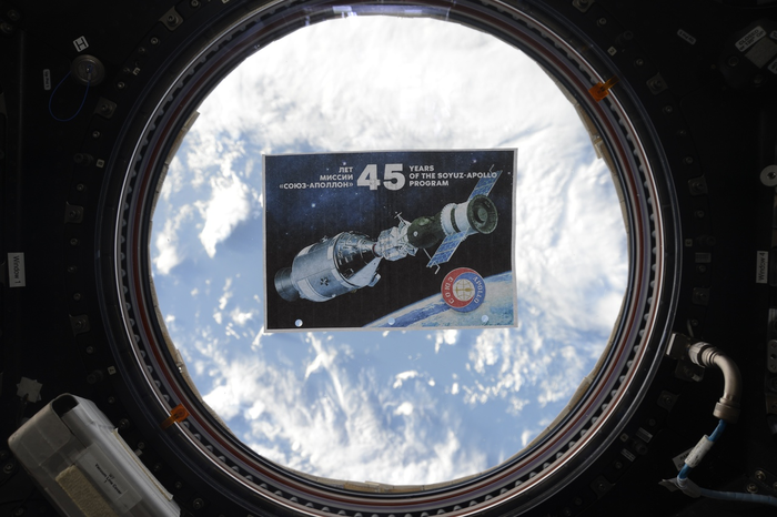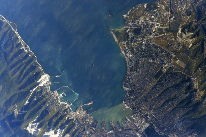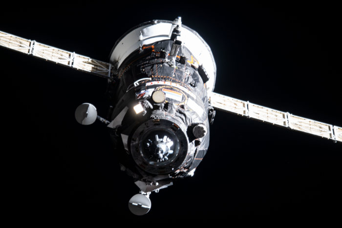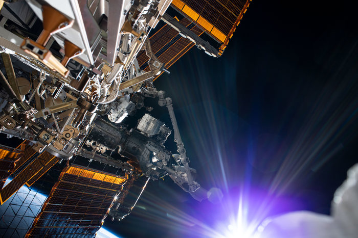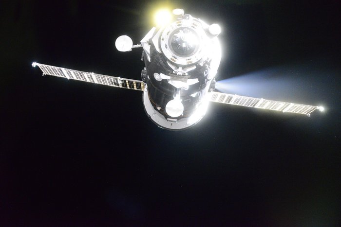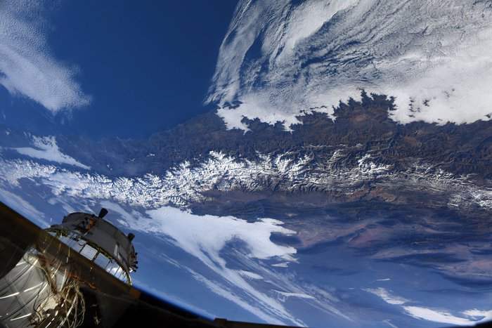 - Российский грузовой корабль 'Прогресс МС-15' пристыкован к стыковочному отсеку 'Пирс'. Ниже орбитальной лаборатории находятся огни города юго-восточной Европы с ботинком Италии в центре. На левом переднем плане находится мини-исследовательский модуль 'Рассвет', который также служит стыковочным портом для российских грузовых и экипажных судов