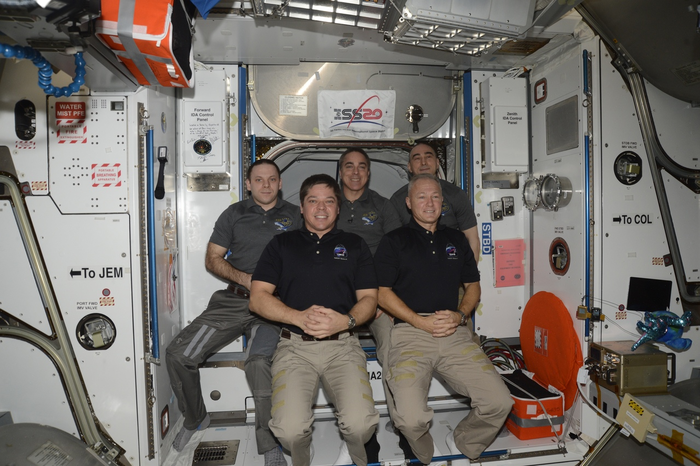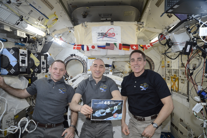 - Спустя 2 месяца полета Боб Бенкен и Даг Хёрли возвращаются домой! Первая фотография сделана сегодня во время прощальной церемонии, где мы собрались всем экипажем экспедиции МКС-63