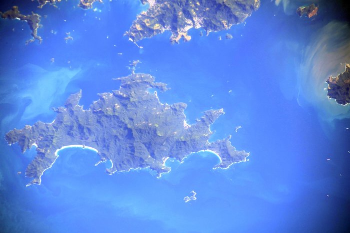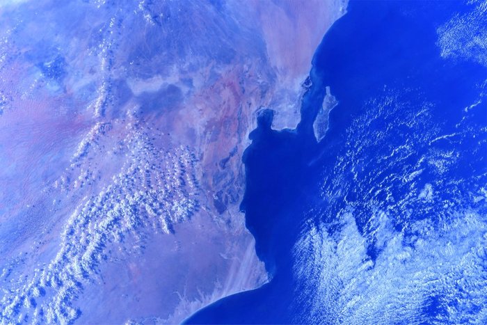 - Островное государство Шри-Ланка и ярко освещенный южный край Индии изображены на этой фотографии. Эта часть индийского субконтинента окружена тремя основными водоемами, включая Лаккадивское море на западе, Индийский океан на юге и Бенгальский залив на востоке. Звездное небо и атмосферное сияние обрамляют горизонт Земли
