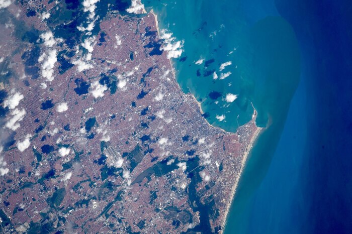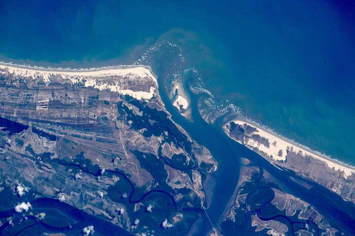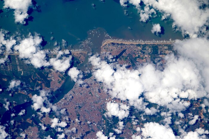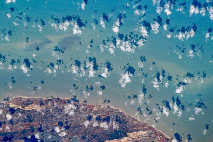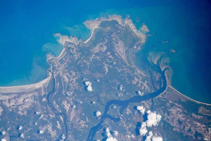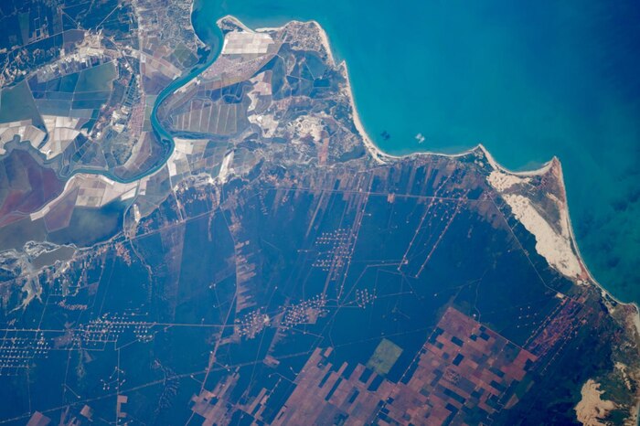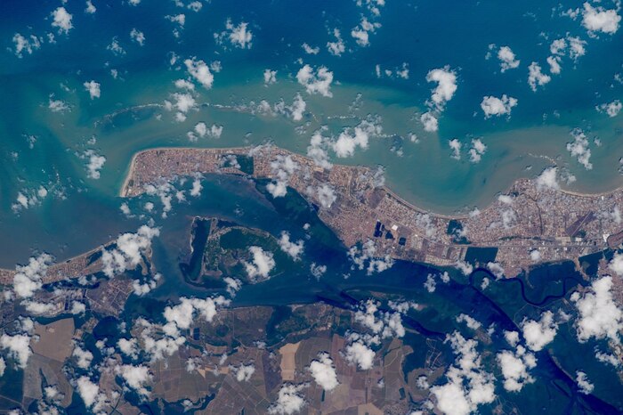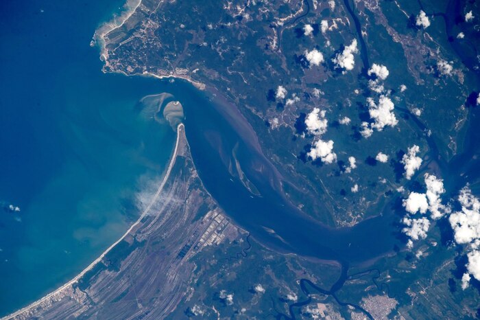 Эта крупнейшая страна Южной Америки выглядит из космоса невероятно ярко и красочно! Кажется, что она собрала в себе все оттенки лазурного!