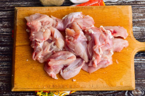 Готовить очень просто, для этого разделываем тушку курицы на кусочки, перекладываем в кастрюлю, добавляем две луковицы, специи и свинину (любая часть) заливаем водой и ставим варить на 1час при слабом кипении. По истечении времени достаём мясо, нужно дать ему остыть, а бульон процеживаем.