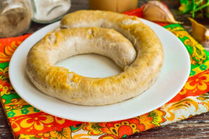 Можно сделать колбасу кругами, а можно перекрутить и подвязать шпагатом в виде купат (как кому удобно порционально).