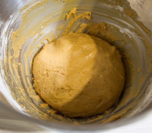 Тесто получается мягкое, т.к теплое, поэтому делим его на 2 части, накрываем пищевой пленкой и ставим в холодильник на 30 минут.