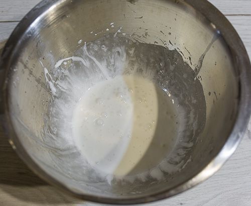 От общего количества муки, оставляем пару столовых ложек с горкой для дальнейшей работы с тестом.