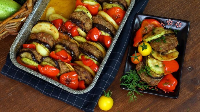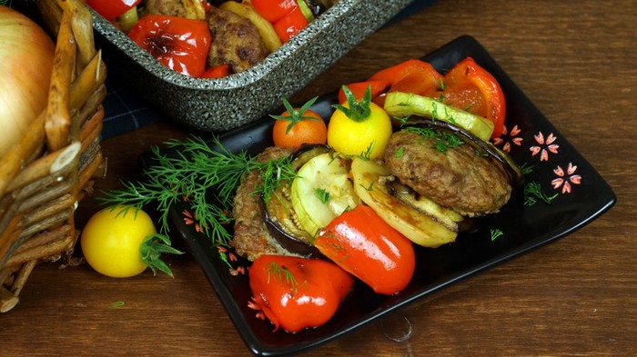 Рататуй с овощами и мясными котлетами готов! Именно после обжарки это блюдо приобретает особенный, завершенный вкус.