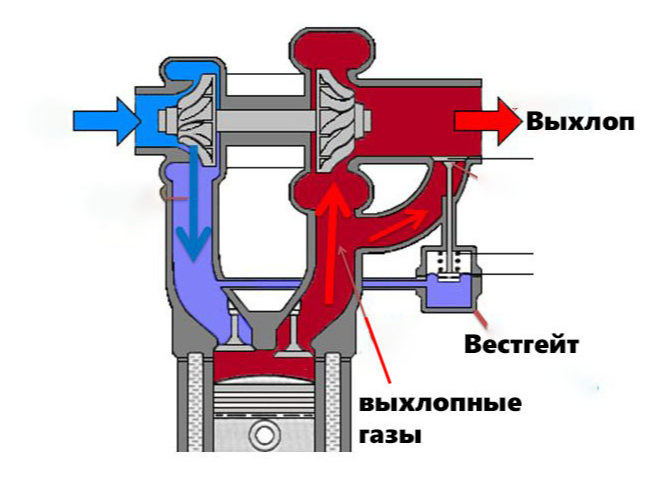 Вестгейт – это всего лишь перепускной клапан в горячей (турбинной) части турбокомпрессора, который, при необходимости, направляет выхлопные газы в обход колеса турбины, предотвращая превышения допустимых оборотов. Актуатор – это автоматический исполнительный механизм, который непосредственно регулирует работу вестгейта или системы изменяемой геометрии, перемещением собственного штока.