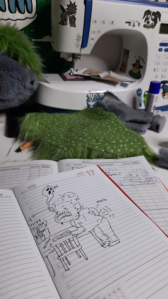 И иногда случается шить по своим зарисовкам. Например тут Двуглавая акула. Процесс