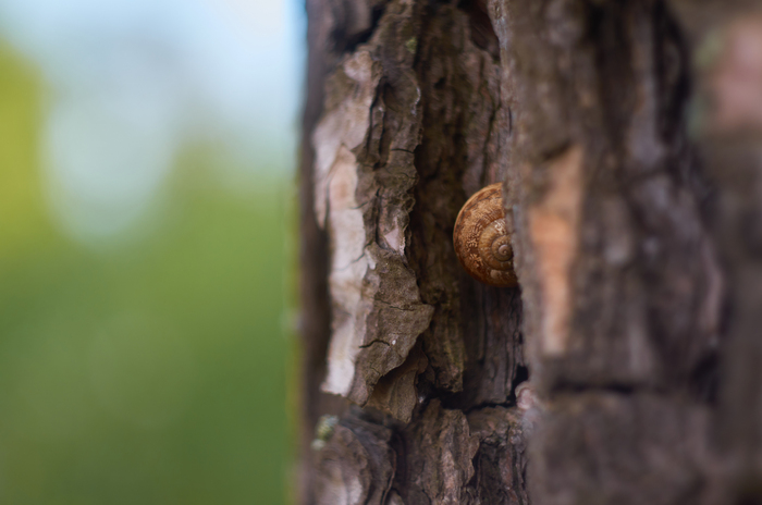 Потом, на коре дерева, на которое облокотил велосипед, засек улиток