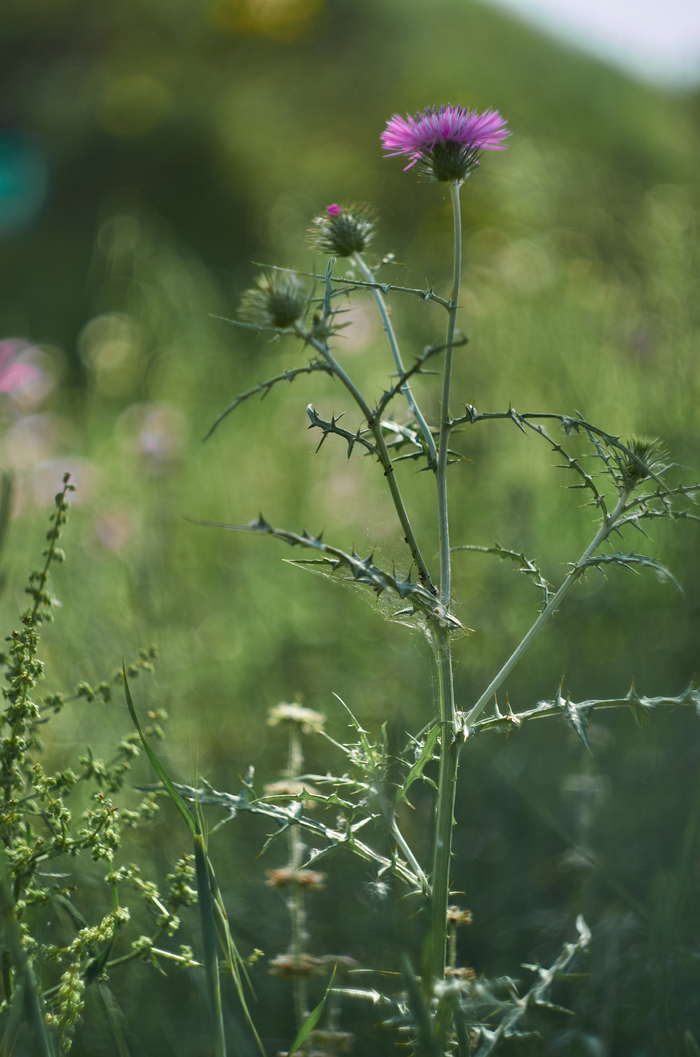 В траве пытался скрыться от меня одуванчик, серией из трех кадров удалось попасть куда надо по резкости