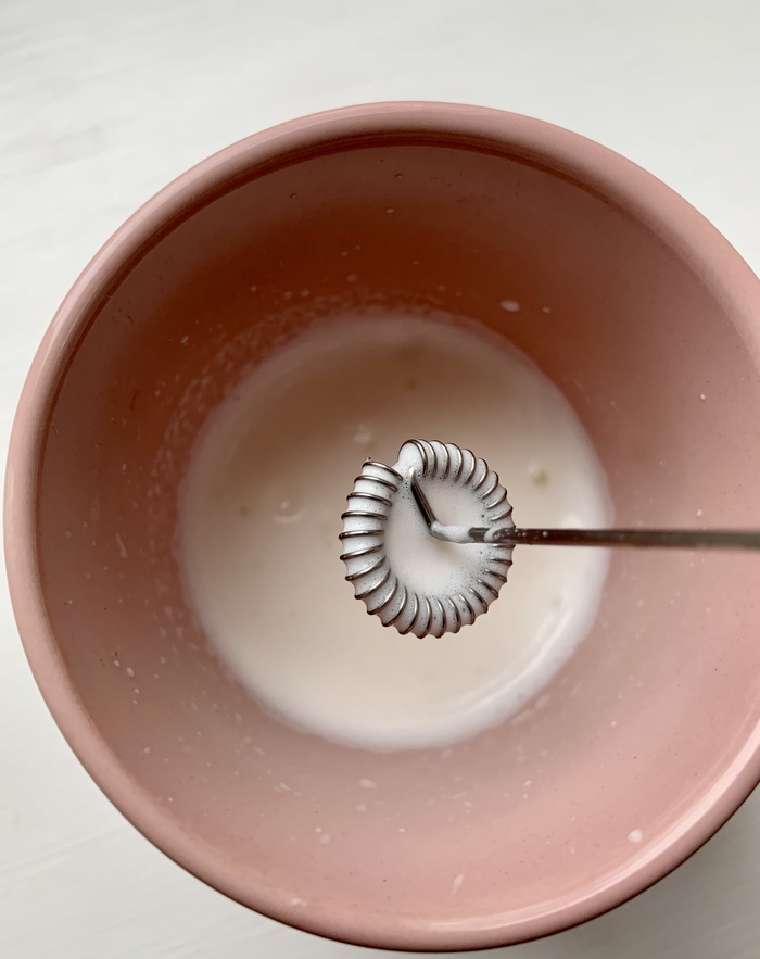 Кофе я всегда варю из зёрен. У меня ритуал, смолоть зёрна, пересыпать молотый кофе в специальный кофейник (ему лет сто), сварить крепкий и ароматный напиток (плита газовая). Даю хорошо прокипеть, так получается крепче. И вот теперь к моему любимому кофе получается добавить молочную пенку.