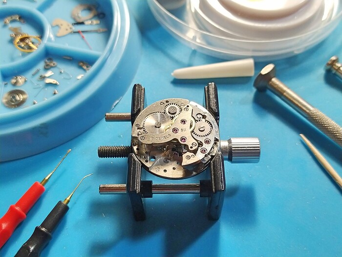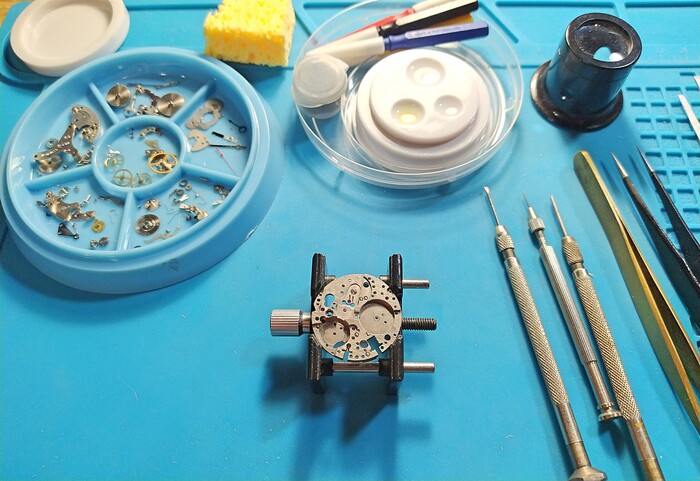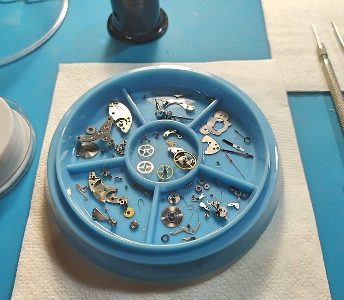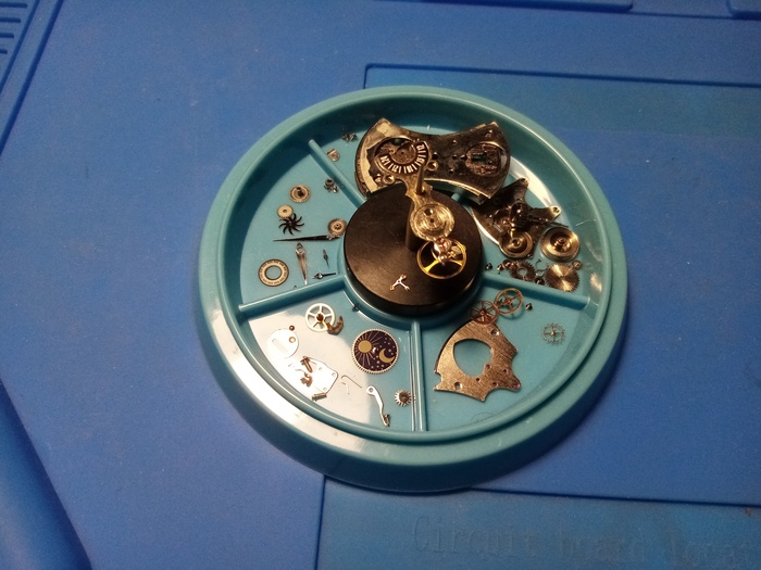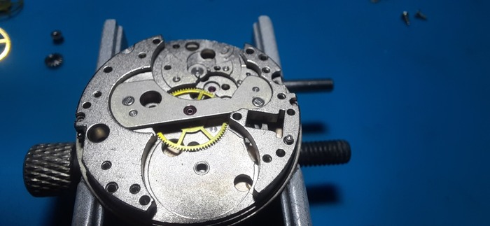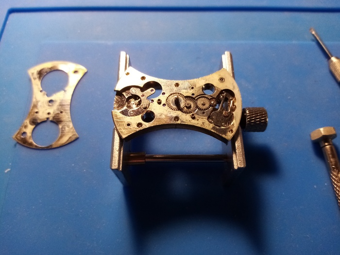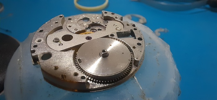 Часы разобраны, детали промываем, все чаще посещает мысль, что конструктор этого калибра был немного не в себе. Тут явно не получится применить некоторые привычные операции при сборке. Однако, менее интересным процесс не становится. Что-то в этом есть.