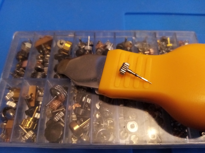 Часы уже бывали в мастерской, где им воткнули коронку значительно меньшего диаметра, из-за которой все и началось. Мало того, что заводить часы стало крайне неудобно. Так она еще и без влагозащиты. Внутренняя часть стекла запотела при эксплуатации, а значит механизм уже нуждается в обслуживании.