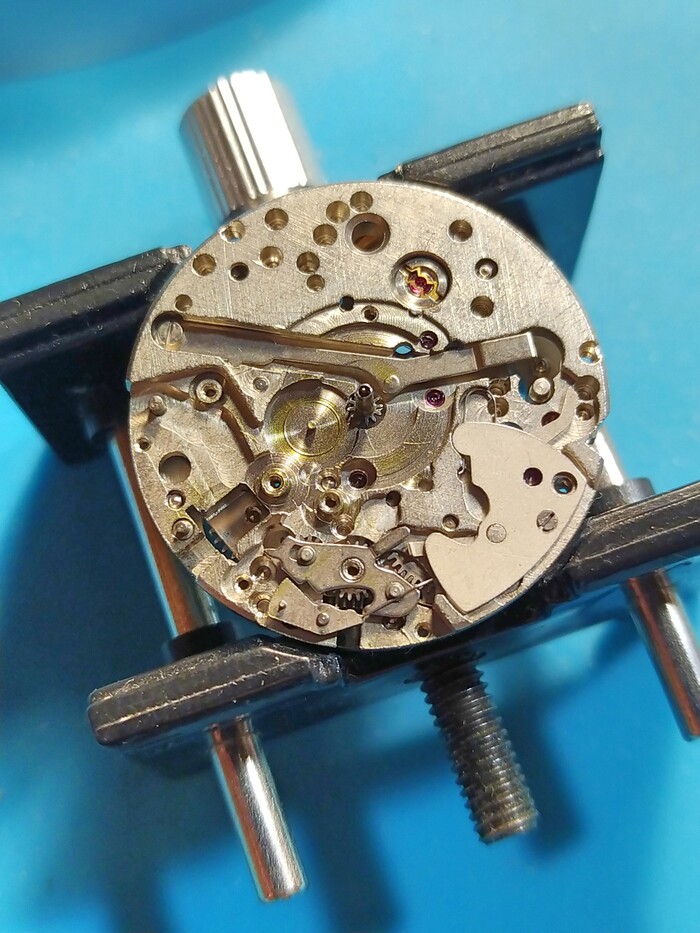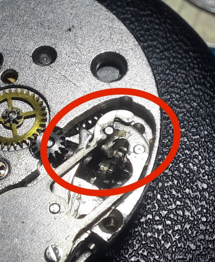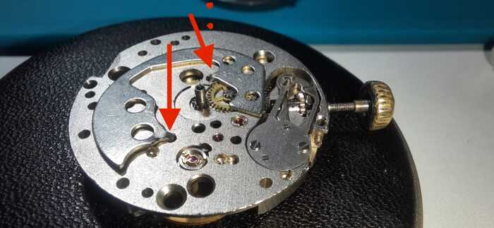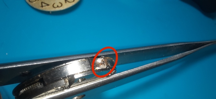 Одна из поломок была как раз на усике, была погнута ось, которая клинила автоподзавод. Так как усик подходит от других калибров 7000й серии, он был заменен на новый.